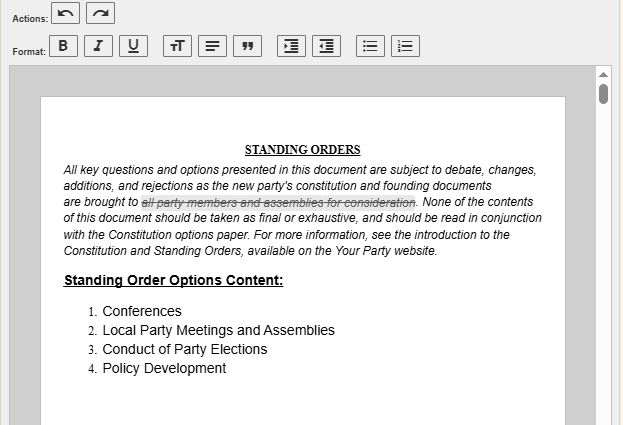 The crowdediting portal should now be closed. According to the latest email sent to the membership, by the end of this week, revised drafts of the founding documents will emerge from what may be the most ambitious constitutional drafting experiment any UK political party has attempted. Thousands of members may have contributed amendments to the Political Statement, Constitution, Standing Orders and Organisational Strategy, some through the regional assemblies, others via the online tool.
